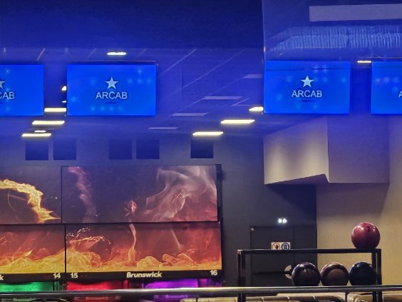 Dès l’entrée, le lieu a séduit par son ambiance chaleureuse : un bar central, des tables rondes et des tabourets disposés devant une scène aménagée – probablement pour des soirées karaoké. À gauche, un restaurant accueillant ; à droite, une salle de billards qui a déjà éveillé quelques envies pour une prochaine sortie. Et juste derrière le bar, les pistes de bowling, toutes éclairées, nous attendaient.