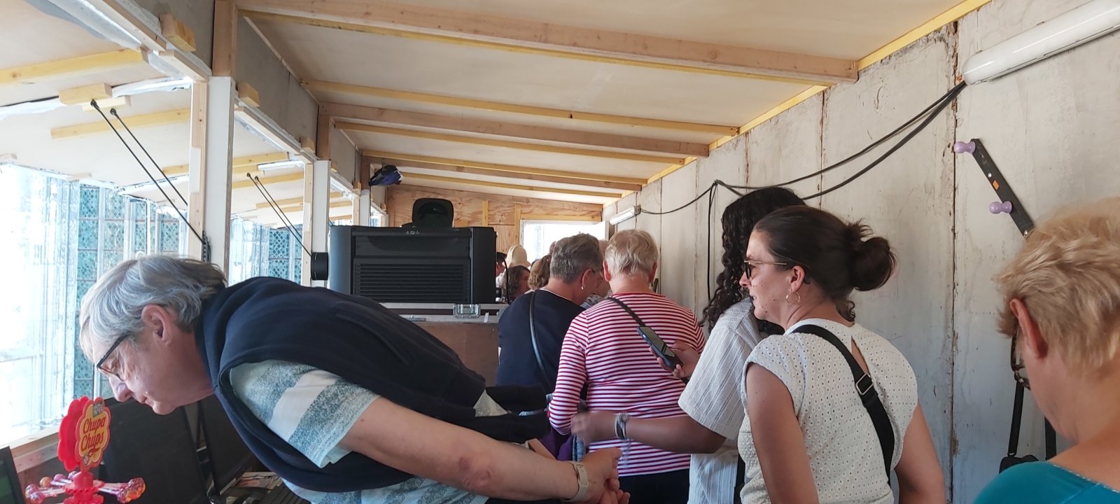 Nous commençons par la visite des coulisses du spectacle historique, accompagnés par plusieurs bénévoles. Ils nous montrent l’envers du décor : les lieux de stockage des très nombreux costumes et accessoires, l’équipe qui gère les enfants, notamment les plus jeunes. Ils nous expliquent le déroulement étape par étape du spectacle. Quelle formidable organisation !