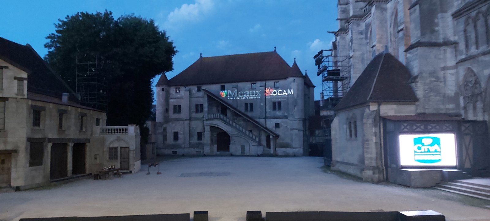 La nuit est tombée… Le spectacle commence. Sur un écran, apparaît Laurent Deutsch. Il nous invite à découvrir ou redécouvrir l’histoire de Meaux. Nous entamons notre remontée dans le temps, de la création de Meaux jusqu’aux années folles. À chaque période, un tableau différent s’anime avec tous les personnages. La musique, la danse et les effets spéciaux accompagnent chaque scène.