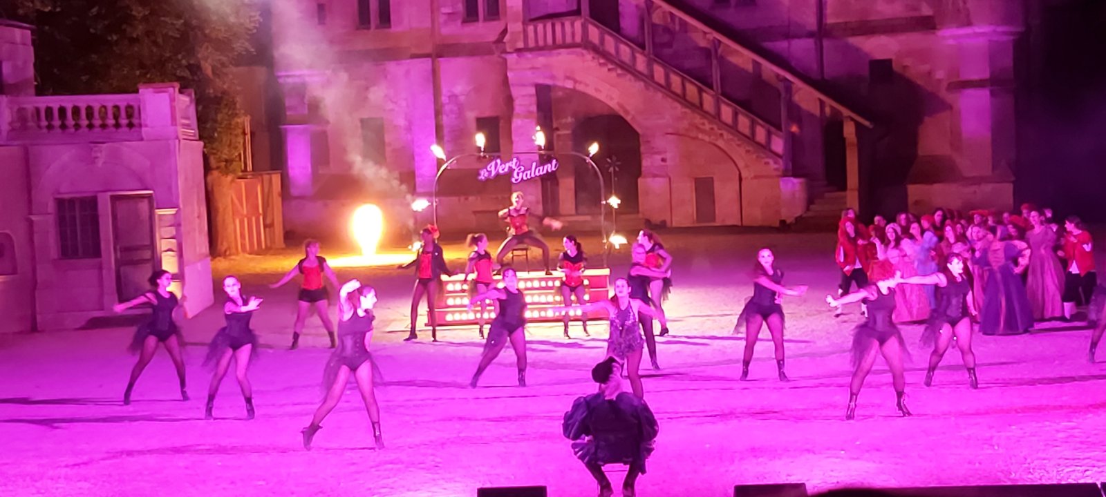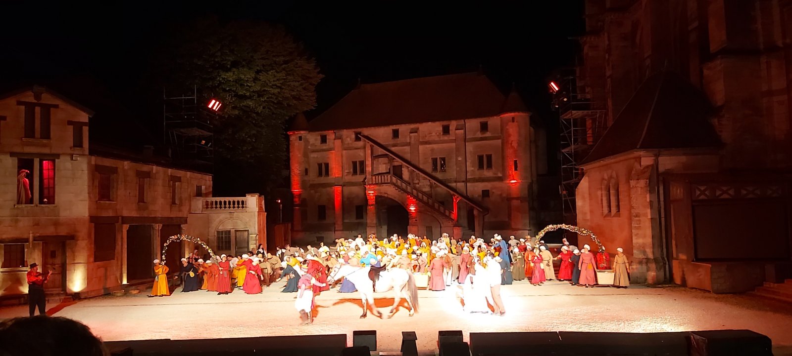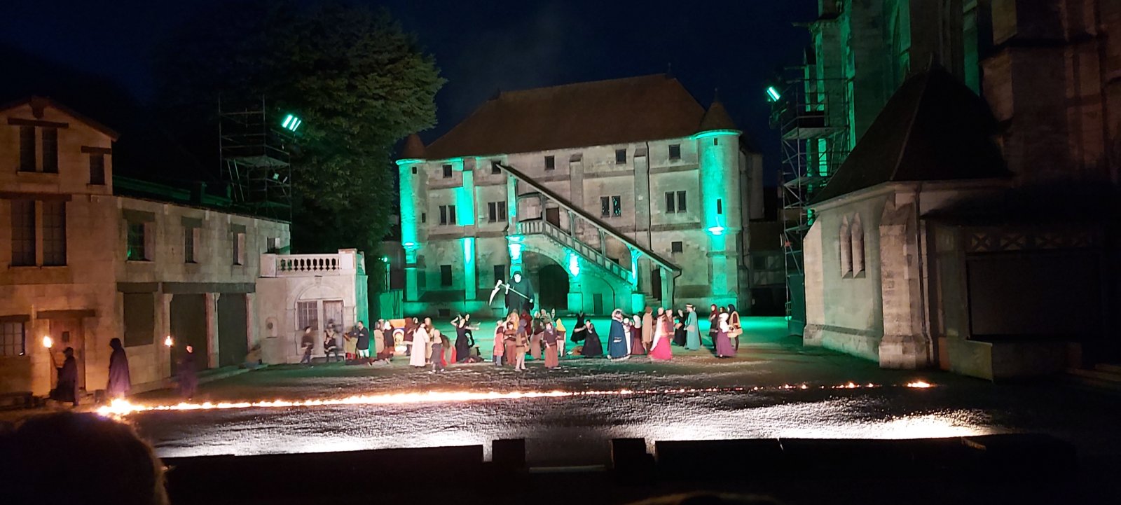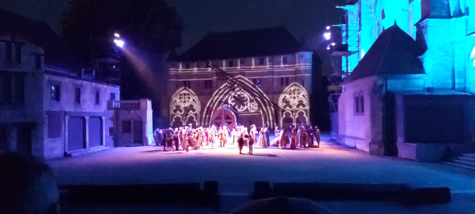 Une fois restaurés, nous retournons dans la cité épiscopale où nous nous amusons des saynètes animées par des bénévoles avant le spectacle. Ensuite, nous nous retrouvons en bonne place dans les gradins pour assister au spectacle.