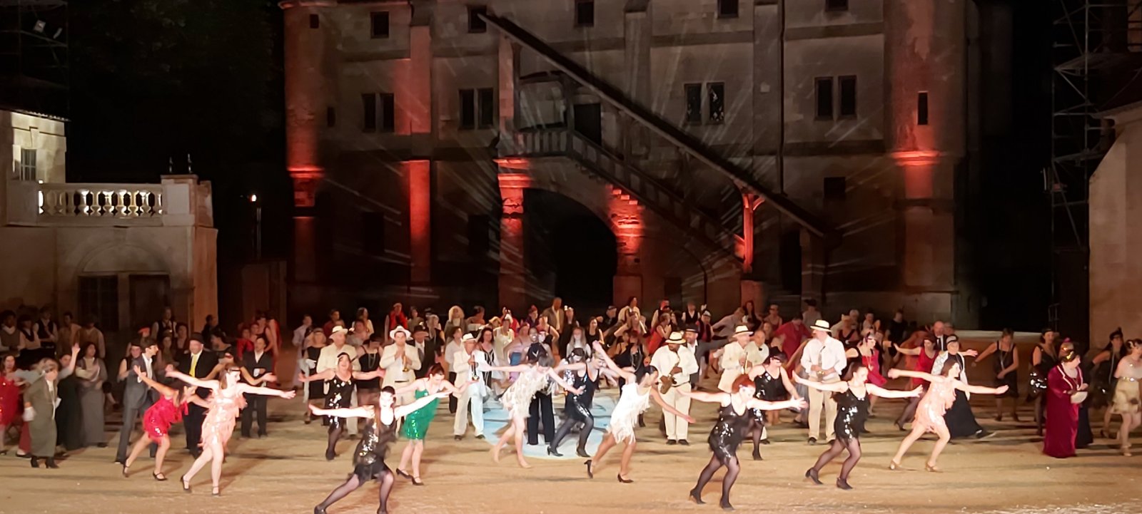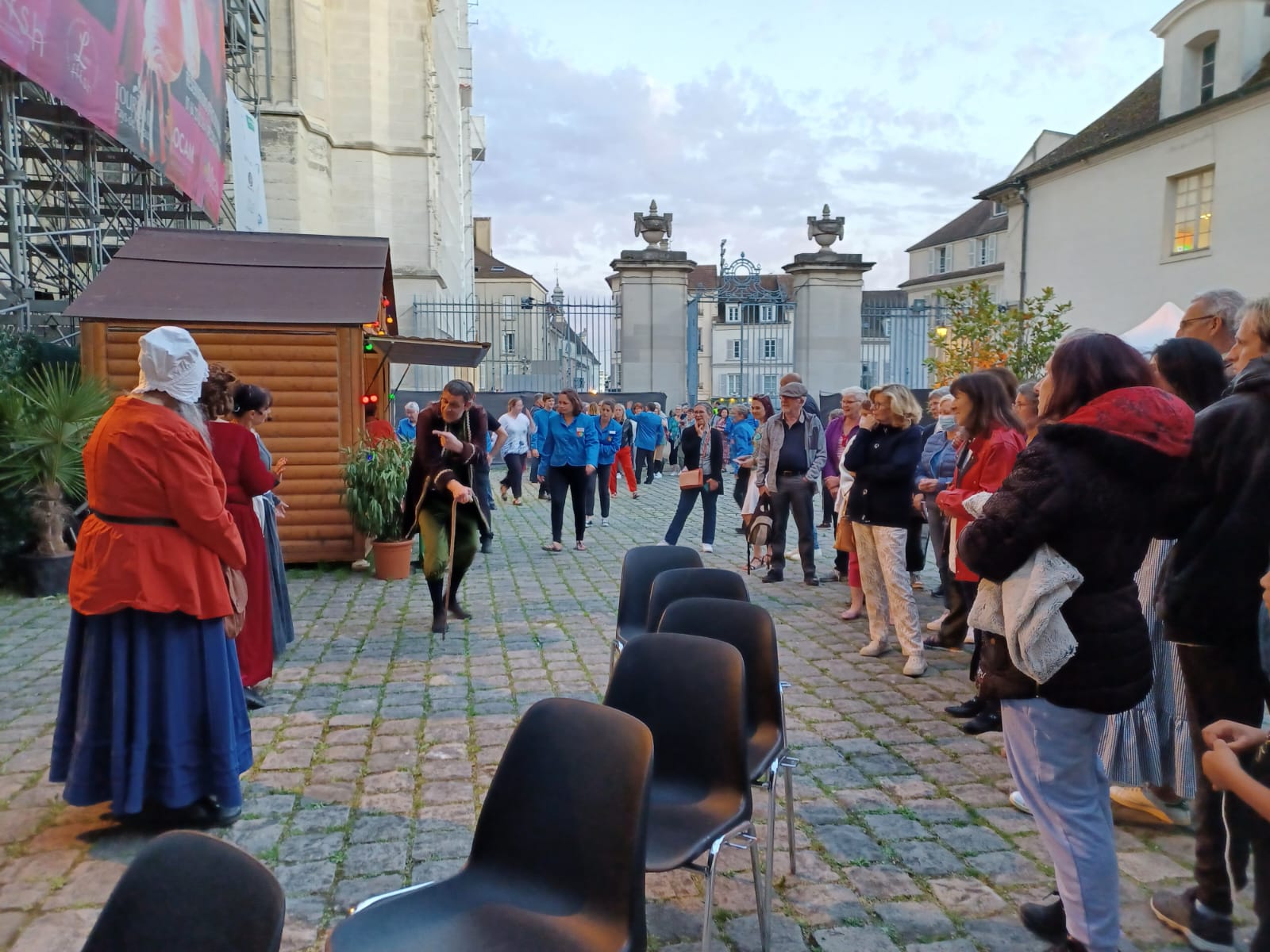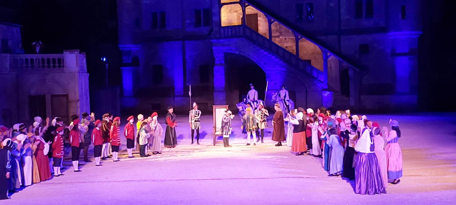 Une fois restaurés, nous retournons dans la cité épiscopale où nous nous amusons des saynètes animées par des bénévoles avant le spectacle. Ensuite, nous nous retrouvons en bonne place dans les gradins pour assister au spectacle.