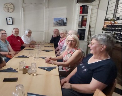 Il est déjà 19 h 40 ! Nous nous rendons à la Maison Meldoise pour y prendre notre dîner. Nous partageons un bon repas dans une ambiance agréable. Les discussions vont bon train, dans la joie et la bonne humeur.