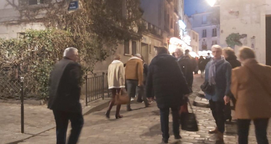Après le spectacle, direction Montmartre. Le quartier étant difficile d’accès, le bus n’a pas pu nous déposer à proximité, imposant une marche parfois sportive. Certains ont poursuivi courageusement à pied, d’autres ont choisi le taxi ou le funiculaire, profitant ainsi d’une vue magnifique sur Paris à la nuit tombante.