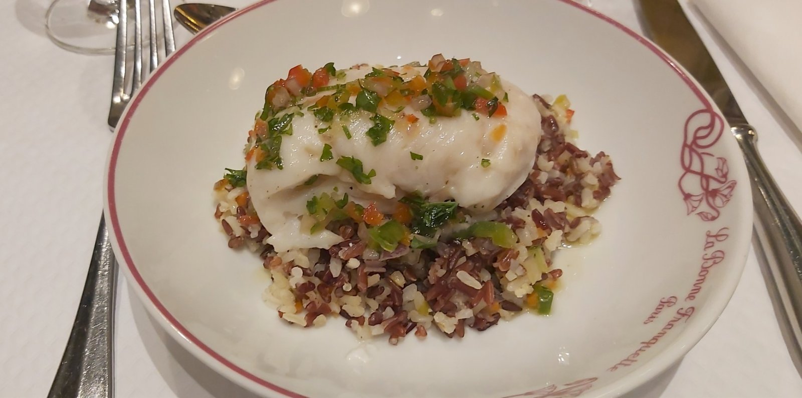 L’ambiance était d’autant plus singulière qu’un groupe d’étrangers appartenant à une confrérie viticole partageait la salle. Un piano jouait pour accueillir les convives : une intention sympathique, même si la musique ajoutait trop de bruit dans une salle déjà bien animée.
